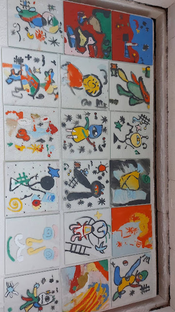 米羅為超現實主義的代表人物。米羅的部份作品被稱為「詩畫」,這和我們所聽過的「詩中有畫、畫中有詩」充滿想像具異曲同工之妙。六年級孩子利用釉料,以780度窯燒的玻璃彩繪方式重新改作米羅獨有的畫風,自創符號及色塊構成,成為獨特的個人風格。